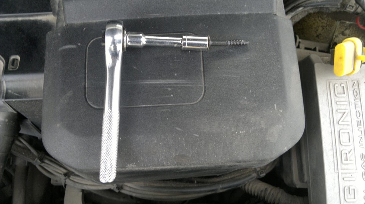 Применив отвертку, нужно вывернуть болт крепления «массовых» проводов к кронштейну кузова.